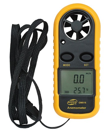 Цифровой анемометр Benetech GM-816 позволяет определить скорость ветра, скорость направленных воздушных и газовых потоков, а также их температуру. Анемометры применяются при измерении скорости воздуха в сиcтемах вентиляции и кондиционирования промышленных и гражданский сооружений, в лабораториях по охране труда, а также при метеорологических исследованиях.