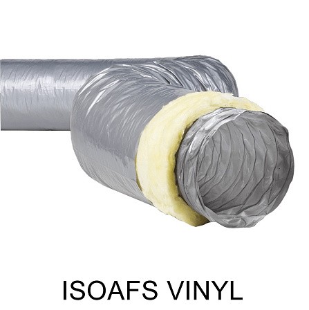 ISOAFS VINYL представляют собой гибкие теплоизолированные виниловые  воздуховоды диаметром от 82 до 254 мм, спиральный каркас которых изготовлен из высококачественной стальной проволоки.
