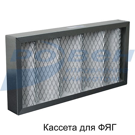 Кассета для фильтра состоит из рамки, изготовленной из оцинкованной стали, внутри которой уложен фильтрующий материал в виде гофр, опирающийся со стороны входа воздуха на сетку гофрированной формы. Фильтрующий материал состоит из синтетического волокна и имеет класс очистки EU4.
