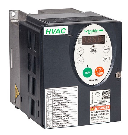 Преобразователь частоты Altivar 12 предназначен для плавного регулирования скорости вращения трехфазных асинхронных двигателей вентиляторов с питанием от 200 до 240 В и мощностью от 0,18 до 1,5 кВт.