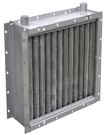 - для паровых калориферов КПСк, температура теплоносителя не выше 130°С, давление не более 0,3 МПа. Теплоотдающие элементы калорифера выполнены из стальной трубы ГОСТ 10704 "Трубы стальные электросварные прямошовные" и алюминиевого накатного оребрения;