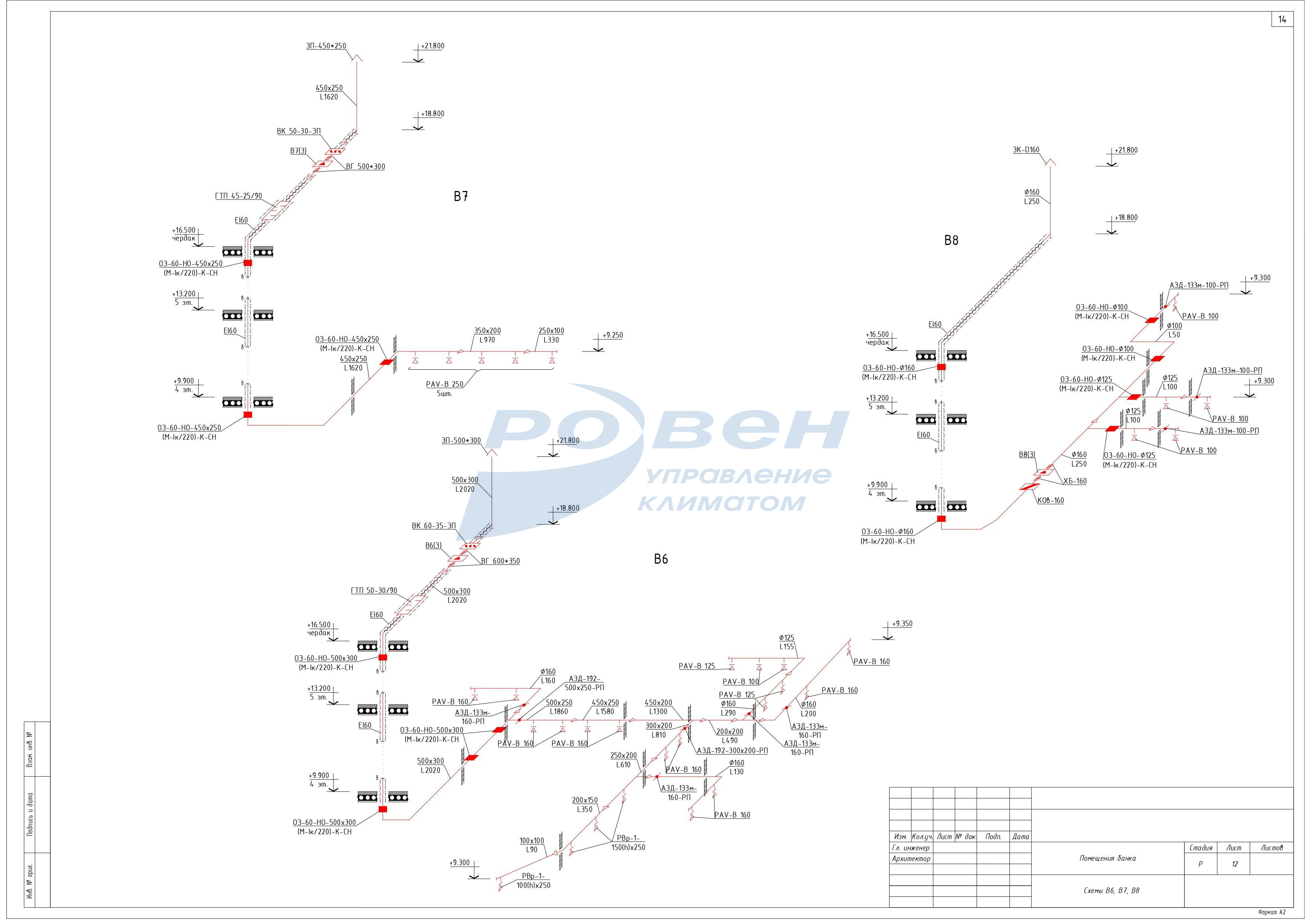 3 этаж - приточные системы - П3, П4, вытяжные системы -В6, В7.